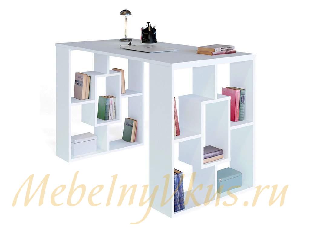 Очень стильный письменный стол СПМ-15 выполняется в модном белом цвете. Особенность стола - это его ножки, которые выполнены в виде функциональных стеллажей. Столешница размером 1200 х 600 мм вместит любое количество бумаг и документов, а ножки смогут разместить разнообразные мелкие предметы.