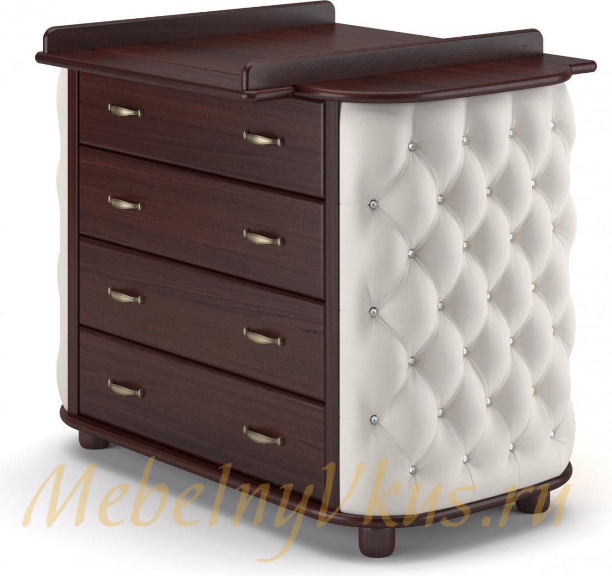 Пеленальный комод Тиффани декор стразы — для ценителей качества и красоты. Комод легко превращается в бельевой — накладка для пеленания убирается, не оставляя следов на столешнице.
