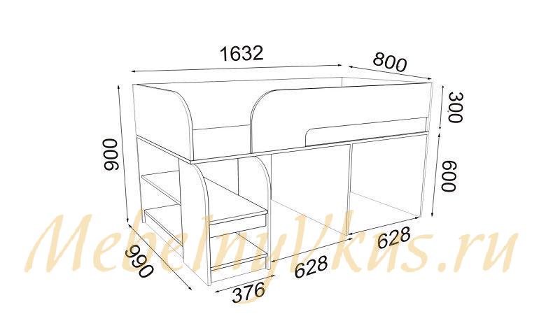 Интересная кровать Астра 9.6 могут заинтересовать родителей, которые ищут невысокую модель со спальным местом 800х1600 наверху и отеделениями, куда можно положить дополнительно вещи. В этот предмет мебели, для полной функциональности, добавлены две открытые полки, куда можно положить мелочи и другие вещи, которые должны быть под рукой и два больщих ящика на колесиках для игрушек. Это отличное решение в десткую.