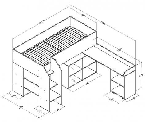 Кровать-чердак Теремок-2 представляет собой самодостаточный комплекс включающий в себя зону для сна, стеллаж и полноценный рабочий стол. Прочная конструкция рассчитана на детей от 3 до 18 лет. Такая детская обеспечит разумную экономию пространства в вашем доме и полностью обеспечит выполнение всех многообразных функций детской и подростковой комнаты.