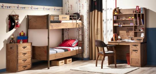 Детская комната Cilek Pirate покоряет детей и родителей ярким оригинальным дизайном! Уникальный дизайн кровати-корабля, мебели и всех дополнительных аксессуаров выполнен в оригинальном пиратском стиле. В качестве аксессуаров есть даже настоящий пиратский сундук для хранения сокровищ, а также стул капитана и письменный стол с картой!