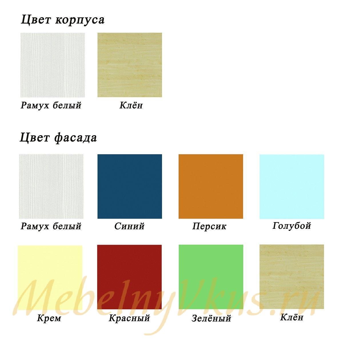 Цвет фасада: голубой, зелёный, красный, крем, персик, синий, рамух белый, клён.