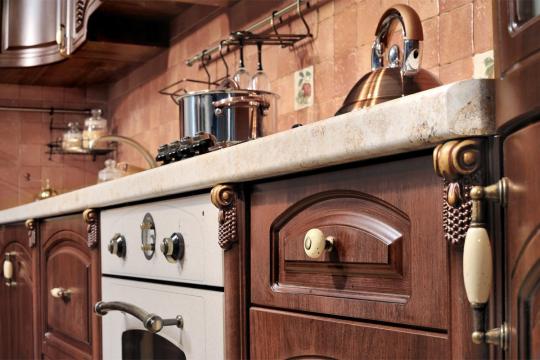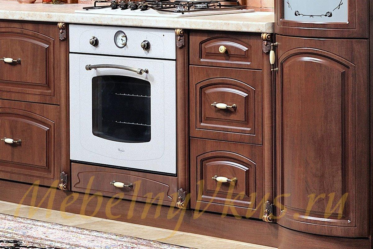Модель кухни «Мадлен» представлена классическом стиле, сдержанные спокойные аксессуары; в этой кухни сочетается гармоничность и стилистика, в ней нет ничего лишнего. Модель изготовлена из качественных материалов. Фасады выполнены из МДФ, крашенного с обеих сторон, столешница - пластик высокого давления, карниз выполнен из (ППУ) пенополиуретана, цоколь - крашенный МДФ. Корпус - российское ЛДСП.
