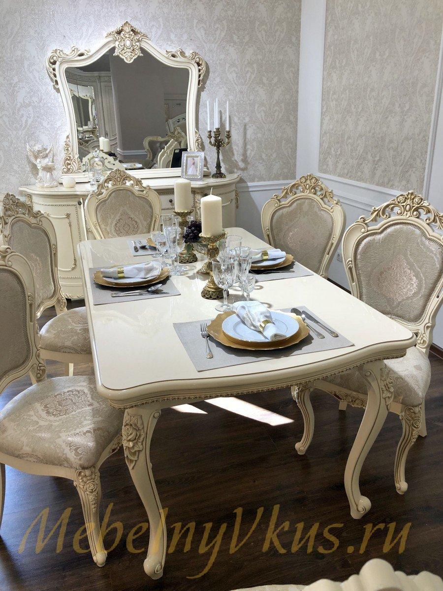 Если вы хотите создать в своем доме неповторимую обстановку тепла и уюта, столовая «Джоконда» обладает всеми необходимыми качествами для этого. Являясь ярким представителем нетленной классики, она насыщена цветом и золочением декоров. Неповторимую вальяжность данной коллекции придают массивные объемные декоры, которые, в сочетании с резными элементами балясин, выглядят достаточно эффектно.