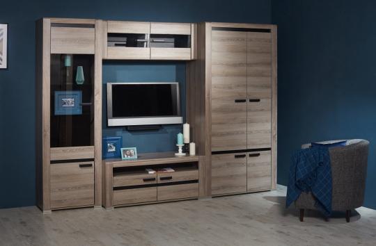 Гостиная «Бруна» - это продуманное и функциональное решение для тех, кто ценит грамотное оформление пространства. Эта гостиная в современном стиле превосходно сочетает в себе навесные открытые книжные полки, а также удобные модульные шкафы, которые вместо создают весьма колоритный декор. Данная модель подойдет как для малых, так и для больших помещений за счет возможности поэлементного набора модулей.