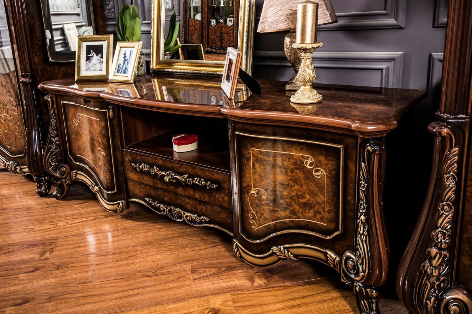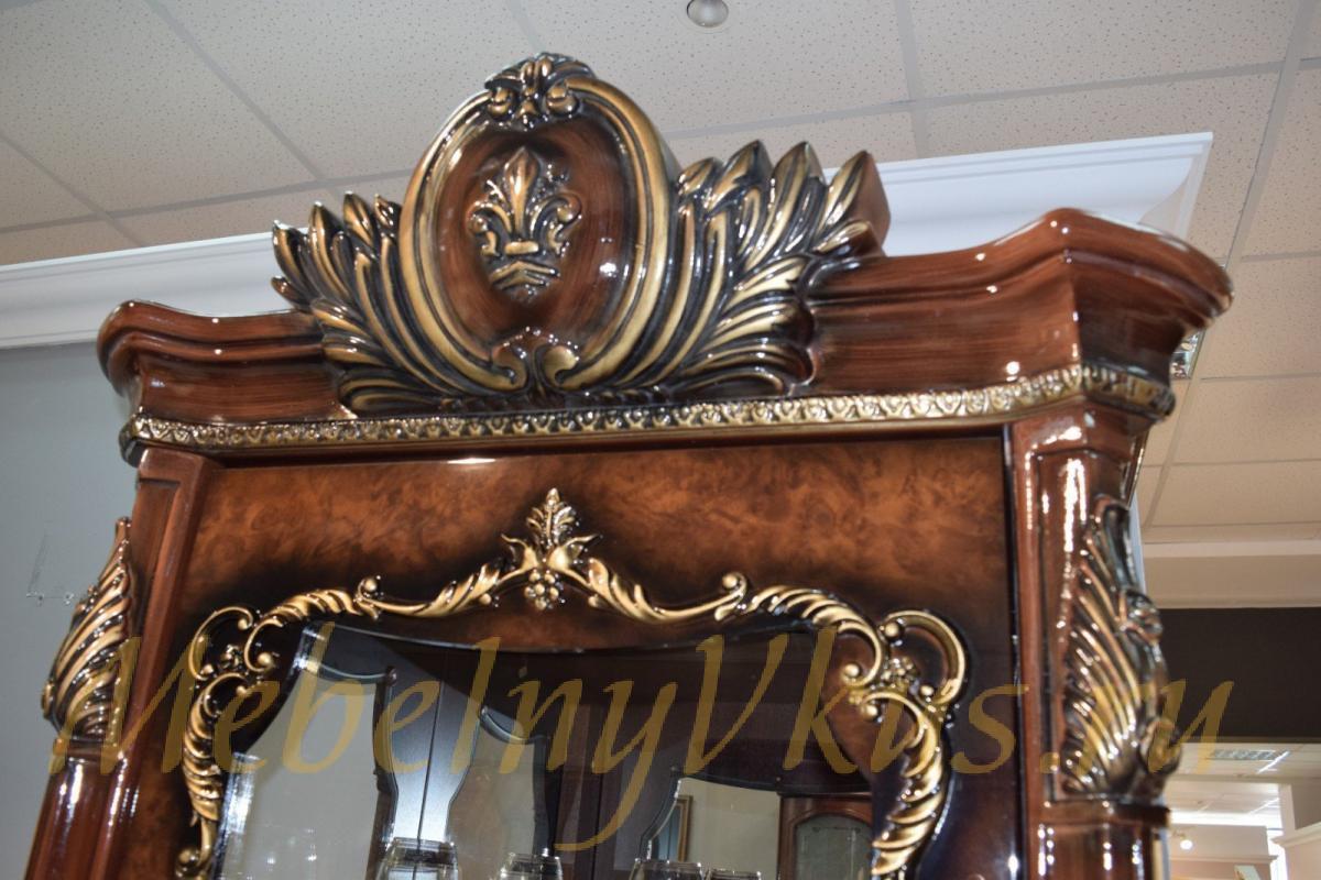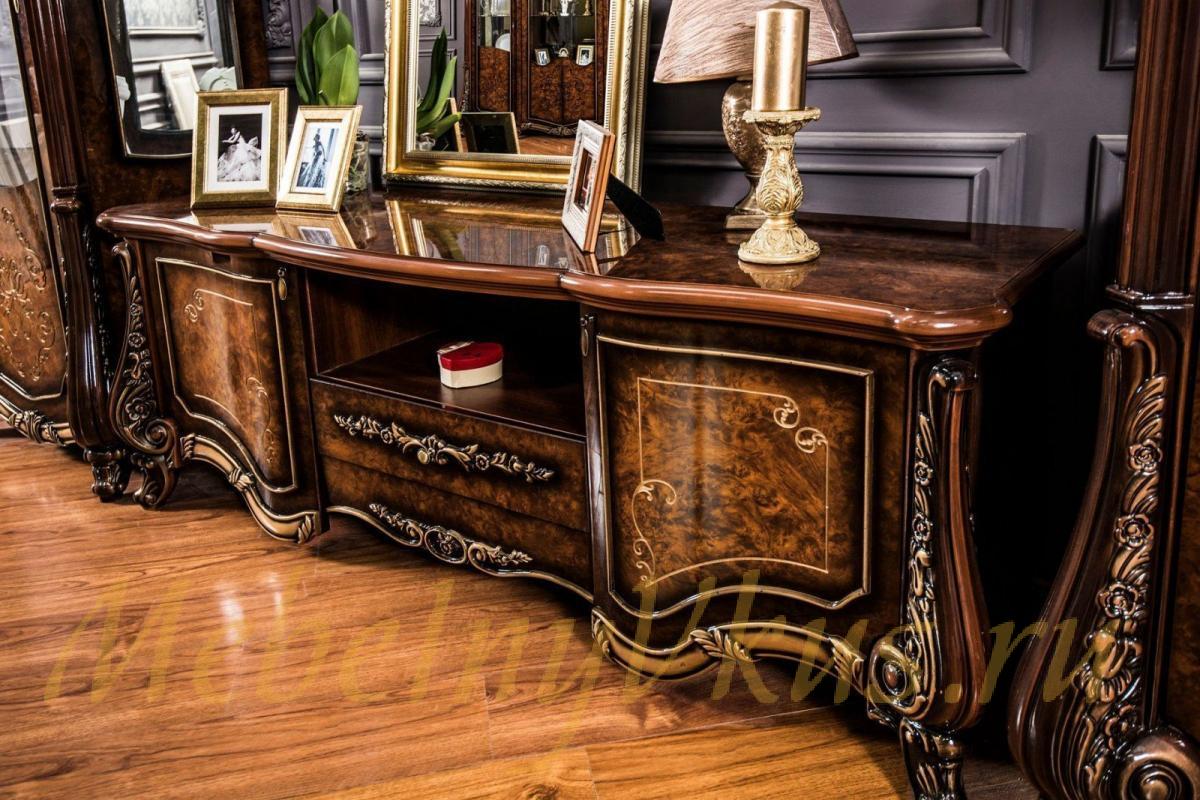Декоративные элементы, фасады, накладки покрыты золотой, темной патиной и матовым лаком или глянцевым лаком на водной основе