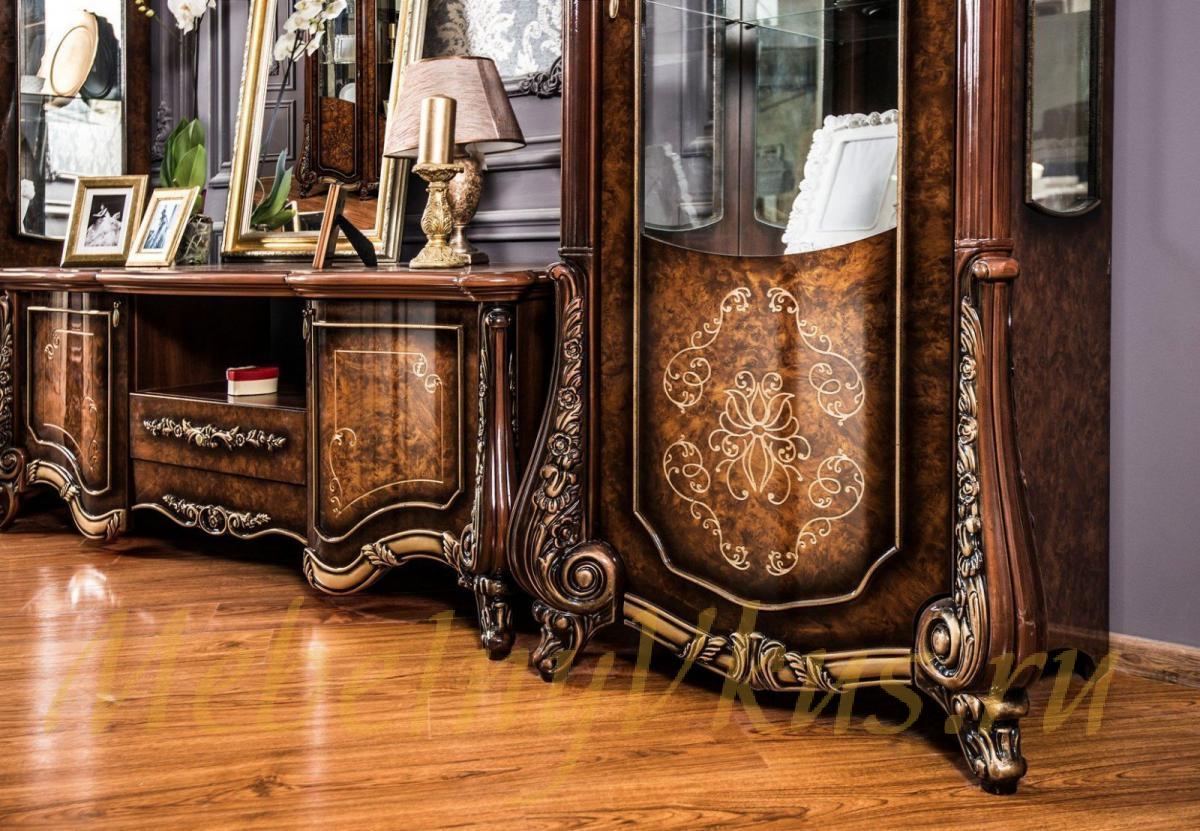 Выполнена в классическом стиле. Эта гостиная олицетворяет стиль и роскошь Вашего дома. Она поможет обустроить и украсить любой интерьер. То ли Вы поклонник классики, то ли стремитесь жить в ногу со временем, в любом случае данный комплект удовлетворит Ваши запросы.