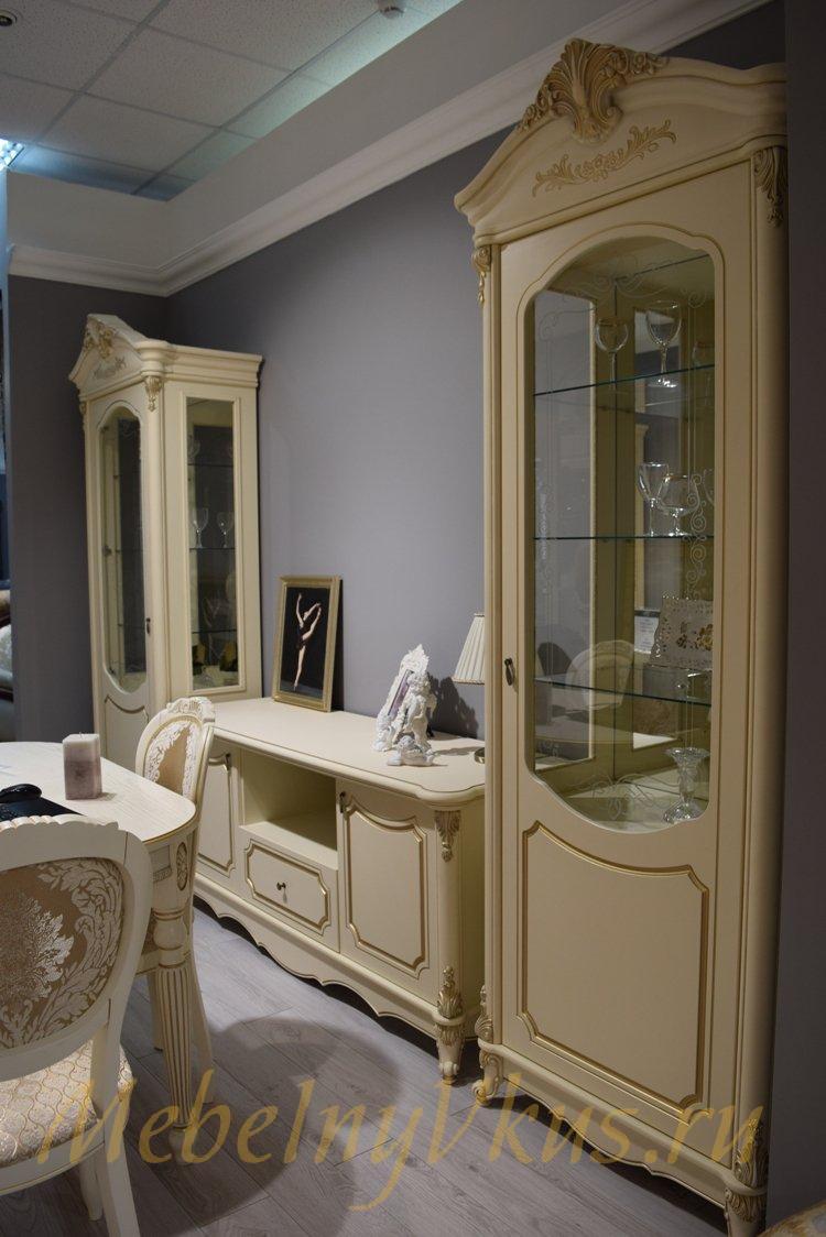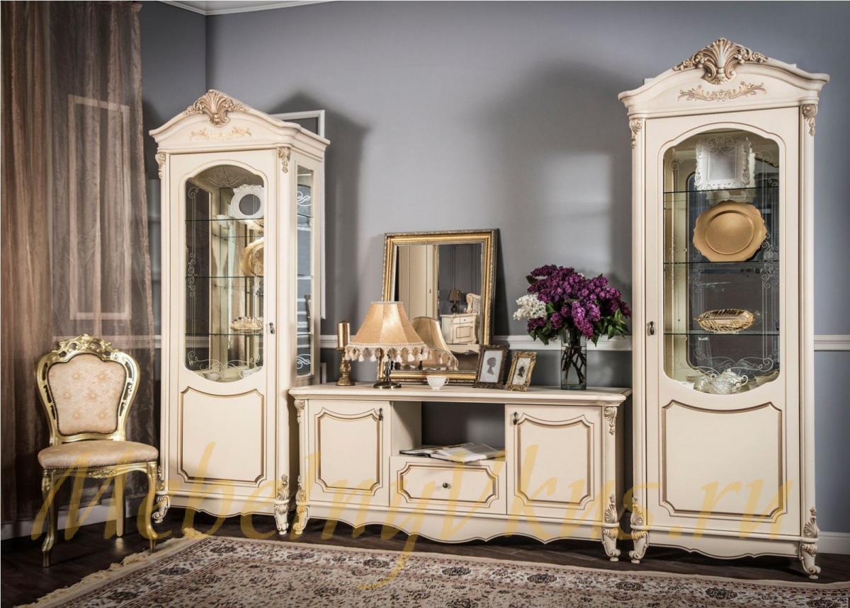Декоративные элементы, фасады, накладки покрыты золотой, патиной и матовым лаком