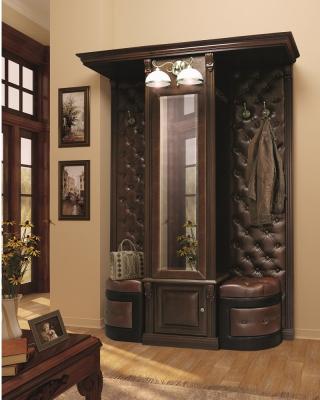 Прихожая Благо Б5.13 состоит из шкафа для одежды с зеркалом, бра, и 2-х вешалок. Данная модель может комплектоваться пуфиками.