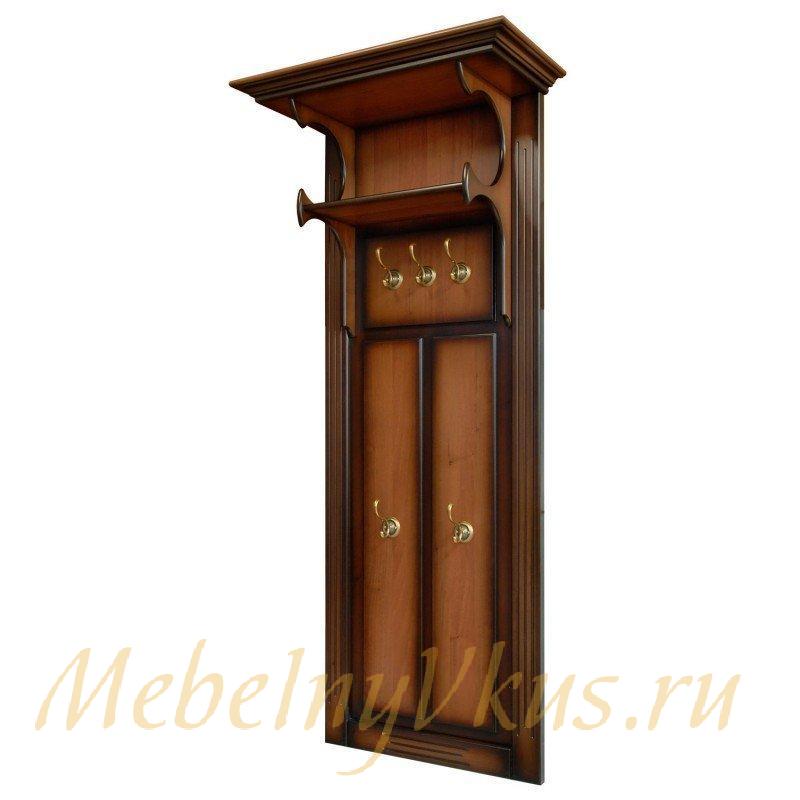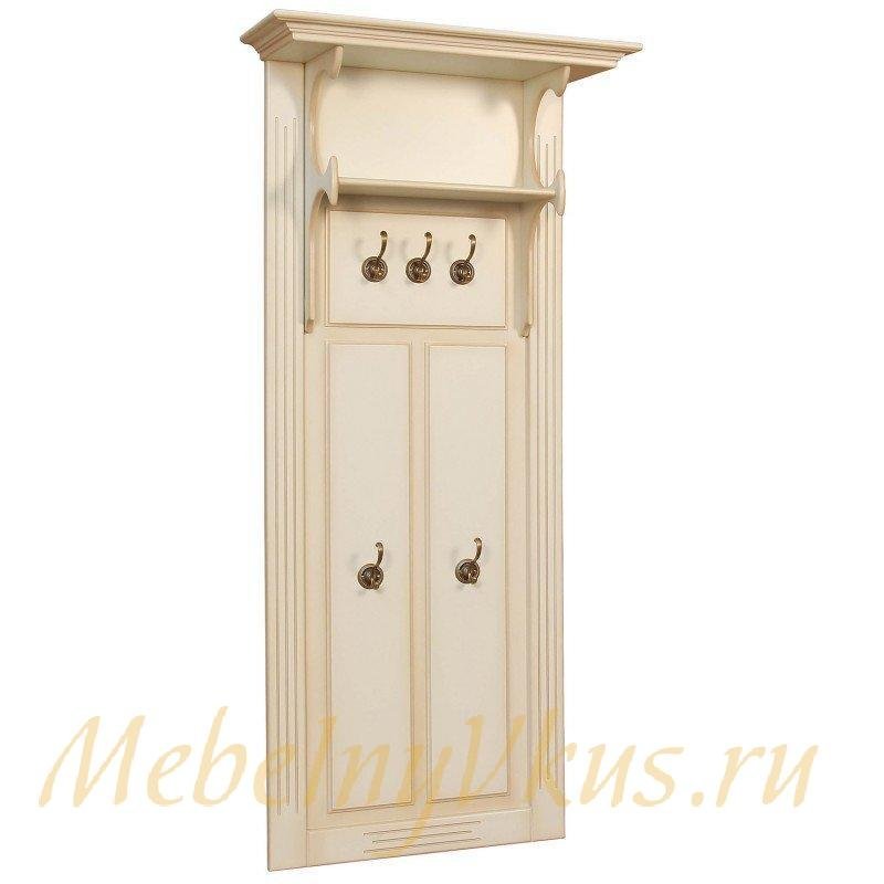 На фоне основного полотна выигрышно смотрятся крючки-вешалки, выполненные в стиле бронзового литья. Крючки расположены на двух уровнях, позволяя размещать одежду и аксессуары под рукой. Дополнительная полка подходит для хранения головных уборов. Невероятно изящная вешалка подчеркнёт ваш вкус и чувство стиля.