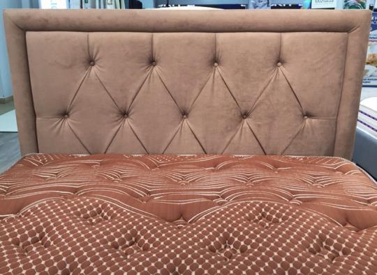 Кровать Fredo имеет невысокую прямоугольную спинку. Спинка оформлена изящными утяжками. Ромбовидные утяжки декорированы пуговицами в тон кровати.