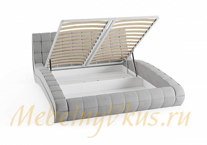 В комплект кровати входит кроватное основание. Каркас основания выполнен из металла, ламели - из берёзы. Обратная сторона изголовья также обита основным материалом.