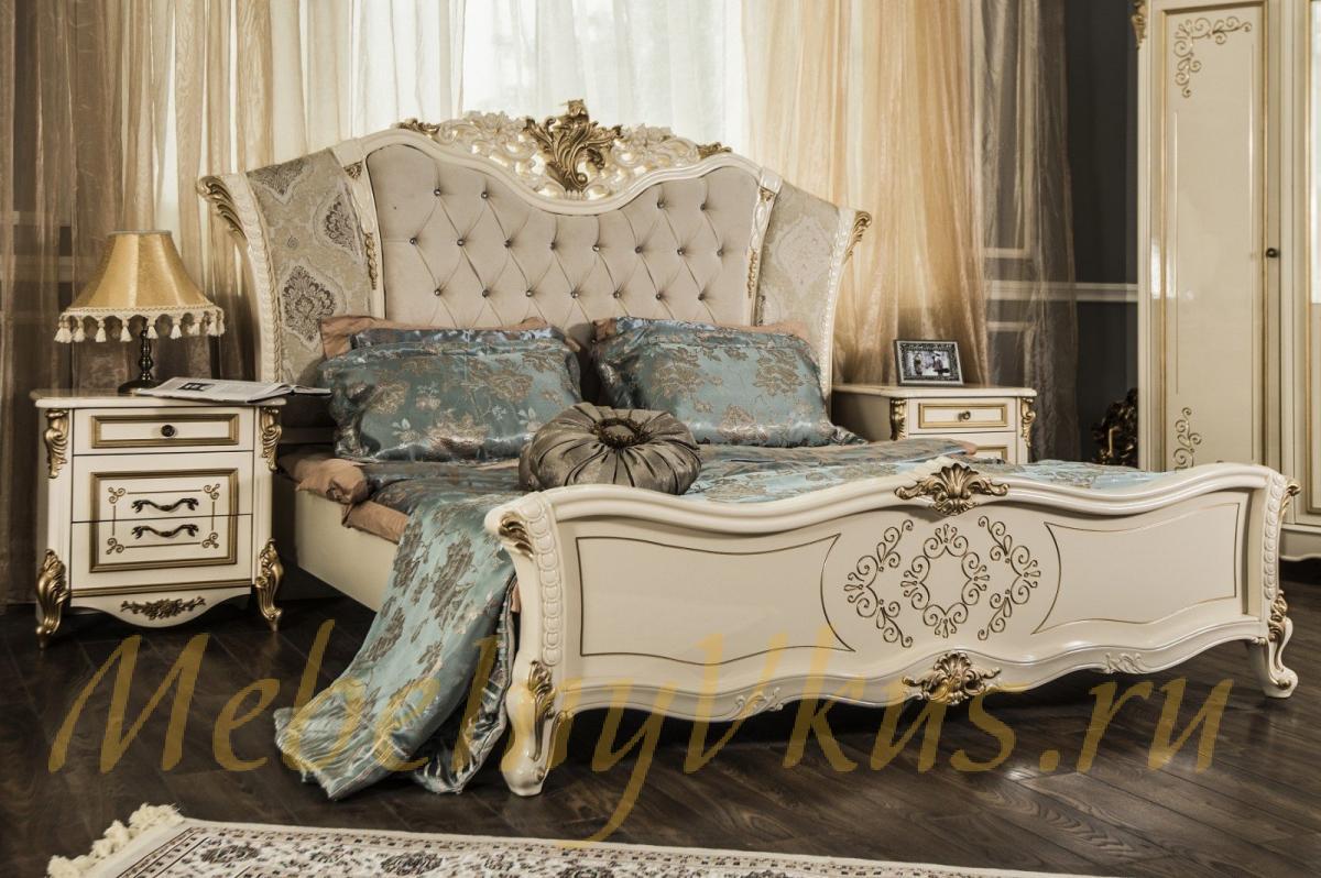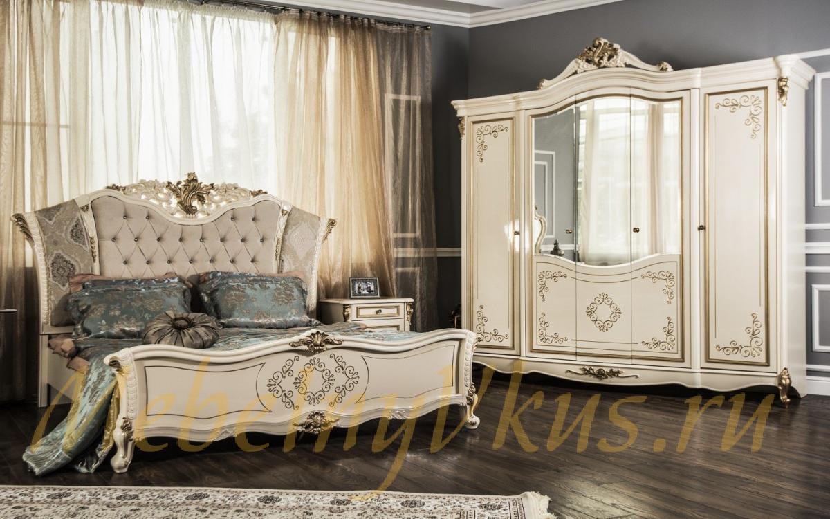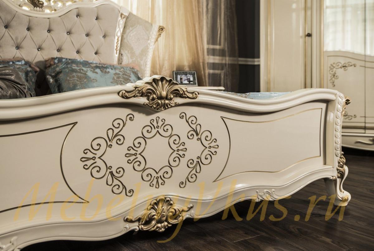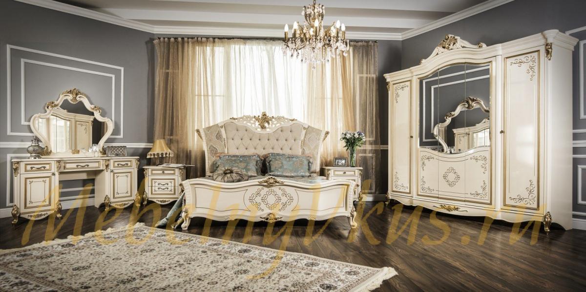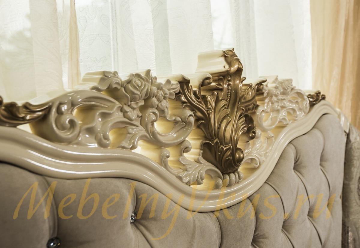 Спальня «Оливия» - поистине королевская спальня. Дизайнерам удалось воплотить в жизнь новую вариацию антикварной мебели. Передняя и задняя спинка кровати украшены фрезеровкой и фигурными элементами.
