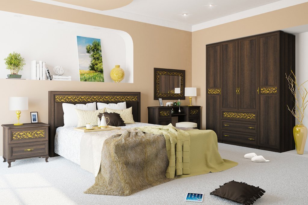 Классический спальный гарнитур включает в себя: