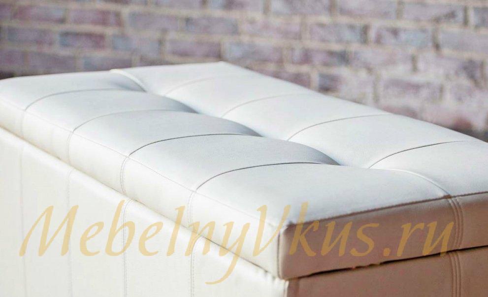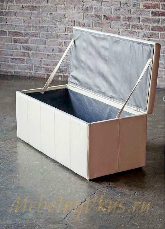 Преимущество пуфа Модерна – наличие ящика для хранения под откидным верхом, поэтому он может использоваться вместо тумбочки в детской комнате или для хранения полезных мелочей в прихожей.