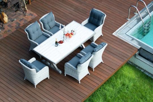Набор садовой мебели из искусственного ротанга стол ВЕРОНА_200 + 6 больших кресел БЕРГАНО с мягкими подушками просто создан для уютного отдыха и приятного время провождения, общения. Набор мебели рассчитан на использование на открытом воздухе и превосходно подходит для использования на даче и в загородном доме.