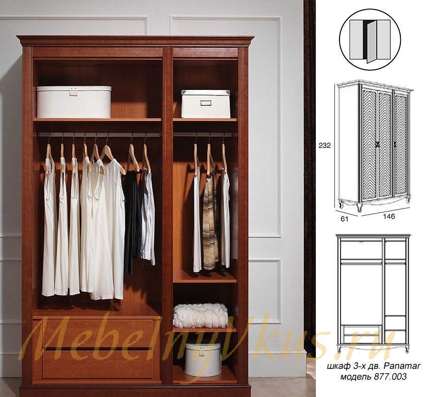 Платяной шкаф 3-х дверный Panamar модель 876.003 из массива бука в трех цветах: вишня, орех и белый. Лучшая мебель из Испании для вашего дома.