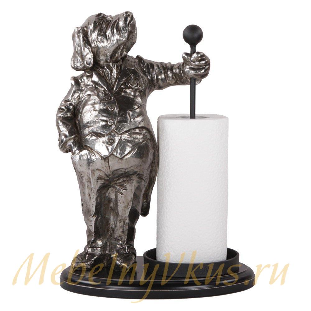 Держатель для бумажных полотенец «Мажордом» станет дополнительным элементов в интерьере вашей кухни. Не обратить внимание на данную вещицу невозможно. Фигурка держателя изготовлена из мрамора и покрыта в цвете Античное серебро. Подставка МДФ. Сам держатель металлический в черном цвете. Гарантия 6 месяцев.